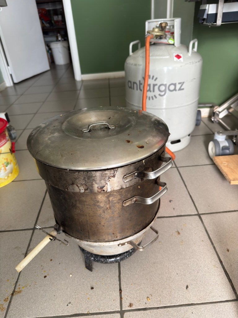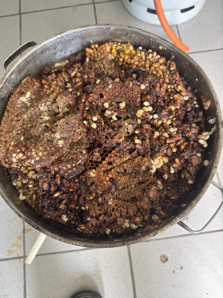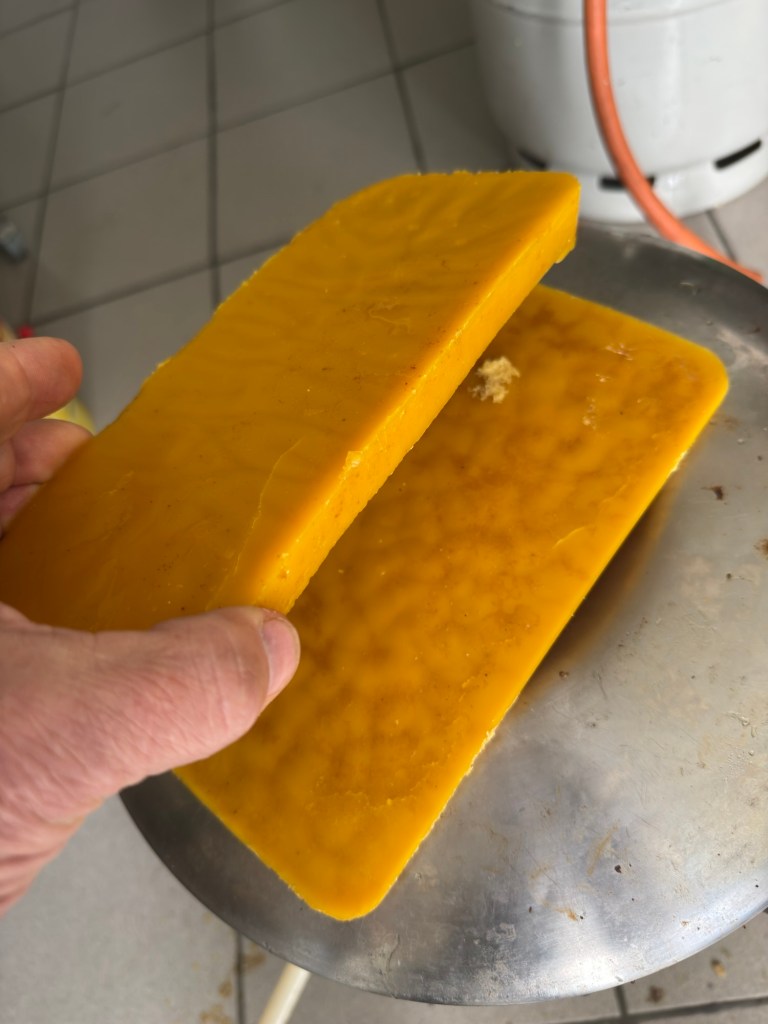 En wat is nu het resultaat van de controle van 13 bijenvolken? 475g zuivere was. En dat dus elke drie weken tot begin juli.