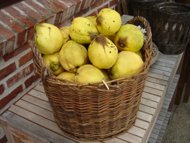 Dagelijks vallen er meerdere kweeperen van de boom en door hun gewicht krijg ik ze niet graag op mijn hoofd. Ook de wagen staat niet meer onder de boom geparkeerd.