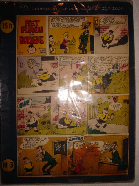 Enkele nieuwe aanwinsten van de stripbeurs. De gags van Piet Fluwijn en Bolleke heb ik in meerdere uitgaves. Het probleem met de oude uitgaves van Het Volk is bekend. Nergens een vermelding van enig jaartal, de achterkanten bestaan in meerdere varianten enz. Ik heb geen idee of ik nu de eerste drukken bezit of vroege herdrukken. De bladzijden zijn van krantenpapier en dus snel beschadigd. De nietjes zijn bijna altijd los en het is dus extreem belangrijk om te controleren dat de middenpagina niet ontbreekt. In dat geval is een strip natuurlijk niks meer waard. Het dikke kapoentjesalbum is compleet maar het blok is losgekomen van de kaft.