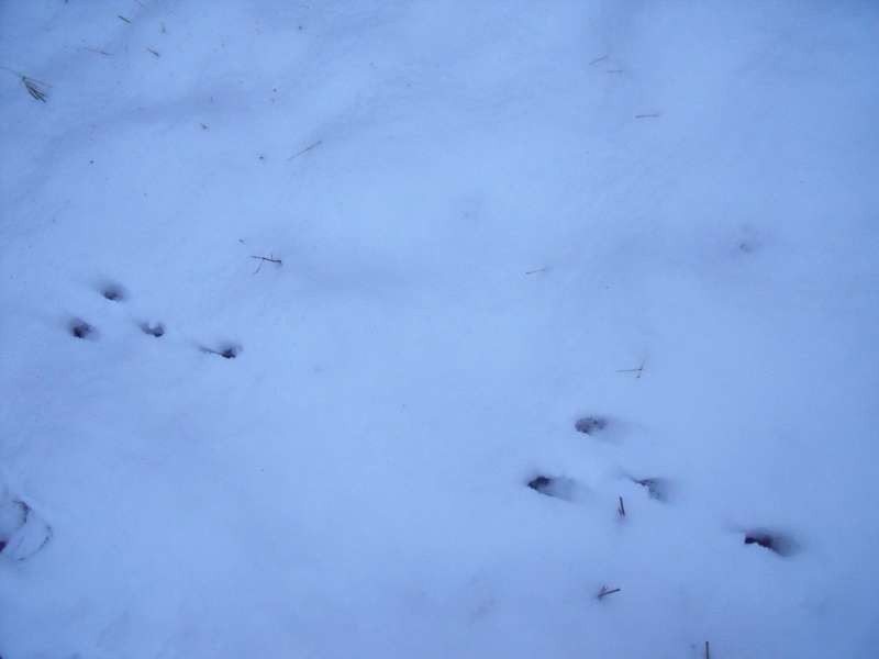 De haas laat zich soms zien vanuit de verte, maar zijn spoor geeft wel een idee van zijn ochtendwandeling. Van graspol naar boomstammetje en soms een knaagspoor op de schors. vorig jaar vond ik ook vossensporen maar die heb ik dit jaar nog niet gevonden.