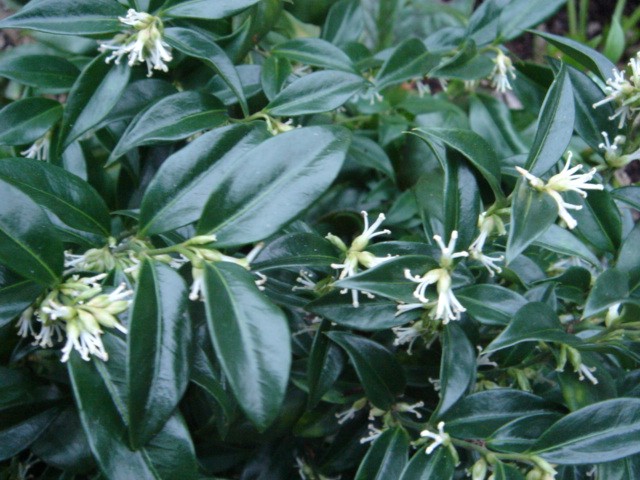 De vleesbes, sarcococca_vleesbes.htm, heb ik vorig jaar gekocht. In het tuincentrum was de geur van de plantjes toen zò overweldigend. Gewoon fantastisch zo vroeg op het jaar. Ik heb de struik op het terras geplant om ten volle van de geur te kunnen genieten.