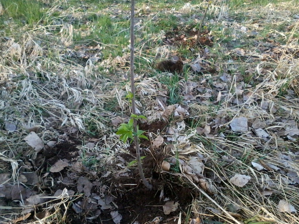 Ik heb ze op een rij gezet met 2 meter tussen. Ze leken me wel pas onlangs te zijn opgepot. De wortels waren niet fijn in de kluit gegroeid. Maar ook kale wortels kunnen deze maand nog worden geplant en voor de prijs kon ik het echt niet laten.