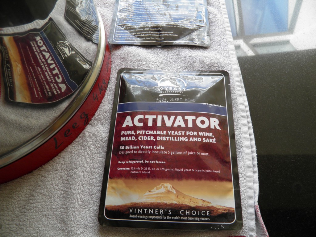 De ‘sweet Mead’ gist heb ik gisterenavond nog even geschud om meer zuurstof in te brengen, maar die is vannacht ook zo intens beginnen gisten, dat ik de slaapkamerdeur maar heb opengezet. De flessen staan op de slaapkamer