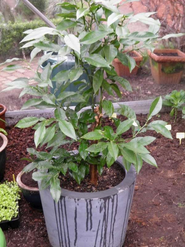 De jonge plantjes voor de plantenruildag, worden nu overdag buitengezet. Als het tenminste geen water giet zoals vandaag. Vorige zaterdag in de Okaywinkel twee mooie citrusplantjes meegebracht. Ik heb ze dadelijk uitgeplant in een grote pot. Ik ben benieuwd. De grote sinaasappelstruik heeft deze winter perfect overleefd. Op de foto kun je mooi zien hoe de jonge scheutjes uit de bladoksels komen. Hopelijk gaan er dit jaar weer eens bloempjes komen. Ik heb alvast voor de eerste keer dit jaar een beetje citrusmest gegeven. De bloemen- en groentenzaadjes die ik in trays heb gezaaid, beginnen nu ook massaal te ontkiemen. Er zijn al enkele die ik kan verplanten in turfpotjes.