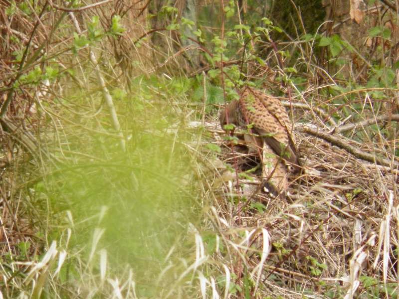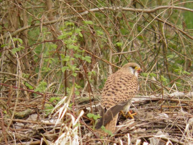 Hierna naar de bijenstand aan het waterbroek om pastinaak, rode bietjes en wortelen te zaaien. bij aankomst vluchtte een ree weg. Het was een volwassen hinde en ze is misschien al afgezonderd om weldra te werpen. vlak voor mijn voeten vloog een torenvalkvrouwtje op met zijn prooi. Blijkbaar had ik haar verstoord, maar ze ging 30 meter verder gewoon verder eten. Een geluk dat ik mijn camera bijhad.