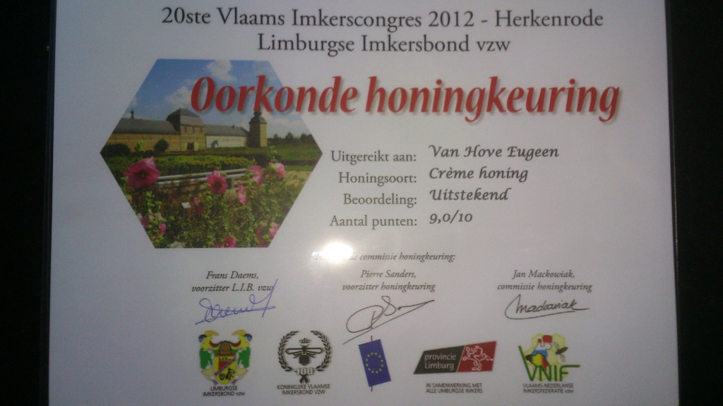 Het congres zit er weer op. Dit jaar ging het over apitherapie: de heilzame werking van bijenprodukten. In de voormiddag was er een voordracht over de wondhelende werking van honing bij onze huisdieren, een voordracht over de wondhelende werking bij mensen en een voordracht over de werking van propolis. Zeer interessante zaken opgestoken. Tijdens de middag genoten de meer dan 700 deelnemers van een lekkere barbecue. Hierna was er de mogelijkheid om een workshop te volgen over het gebruik van honing en een workshop over het gebruik van propolis. In de fraai gerestaureerde tiendenschuur van de Herkenrodesite, waren in de namiddag verschillende standen te bezichtigen die trouwens morgen tijdens het honingfeest ook nog zijn te bekijken. Er was een honingkeuring, een verkiezing van de beste uitvinding en een verkiezing van het beste honingetiket. De experimentele bijenstand van Herkenrode was natuurlijk ook open en iedereen kreeg een vrijkaartje voor een bezoek aan de plantentuin. De ganse dag waren de weergoden ons gunstig gezind. Hopelijk is dat ook morgen het geval als het grote publiek op bezoek komt. Er is voor elke bezoeker zelfs een potje honing voorzien dat gratis wordt uitgedeeld.