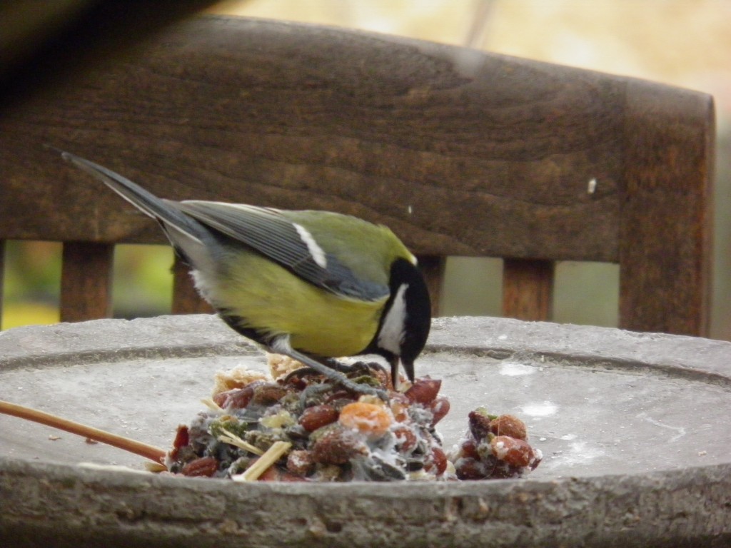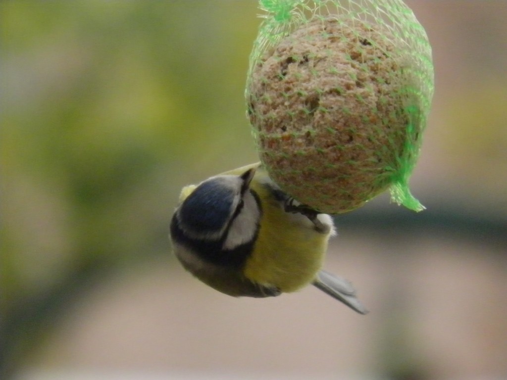 De tuinvogels hebben vandaag het wintervoer gevonden. Sinds vorige week heb ik ook enkele mezenbollen op het terras gehangen. Vroeger hingen ze alleen in de tuin. Maar is nu de bedoeling om ze meer naar het keukenraam te lokken en dat lijkt te lukken. Deze voormiddag, de katten sliepen nog, was het een gekrakeel van jewelste. De pimpelmezen en de koolmezen vlogen af en aan terwijl de vink en het roodborstje nog wat op een afstand bleven. Wellicht kan ik op deze manier wat meer foto’s maken tijdens de komende winterperiode. Ik kan er in elk geval niet genoeg van krijgen.