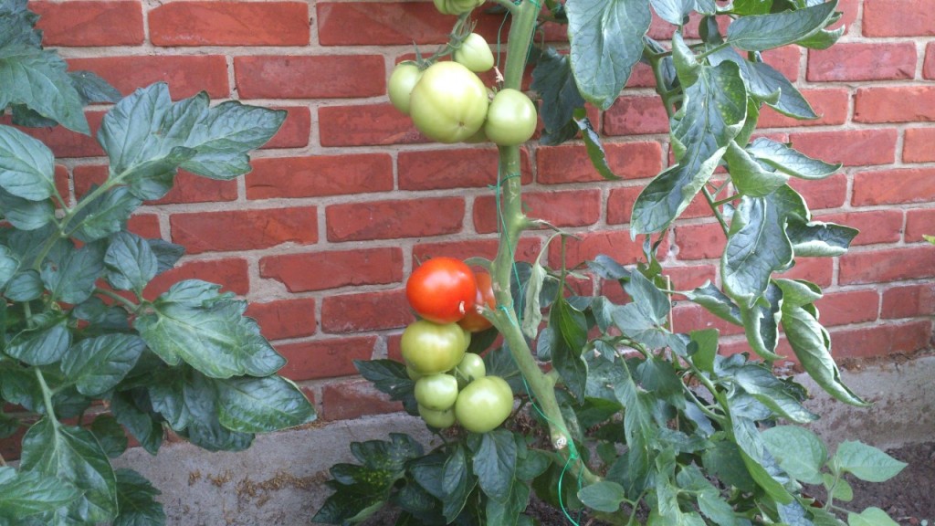 In de serre wordt ondertussen de eerste tomaat rijp.