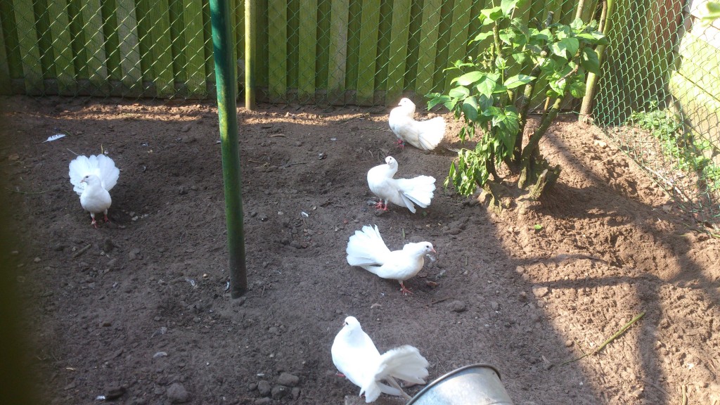 Momenteel vliegen er een tiental pauwstaartduiven in de tuin. Zijn er liefhebbers die er enkele willen overnemen?