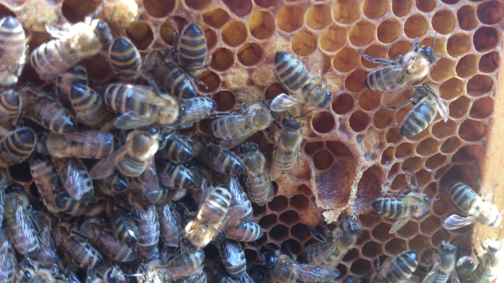 Gisteren weer eens gaan luisteren of de nieuw uitgelopen koningin van de broedaflegger al aan het tuten was. Indien er dan ook een kwaker was te horen, had ik deze graag in een apideakastje gezet. De broedaflegger was van het beste volk. Maar helaas had ik te weinig tijd gehad om ze eerder te controleren. Er was geen getuut hoorbaar en bij oplichten van de dekplank, was het volk extreem rustig. Toch maar de gemerkte ramen opgelicht en alle doppen waren al weggebeten.