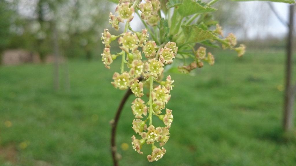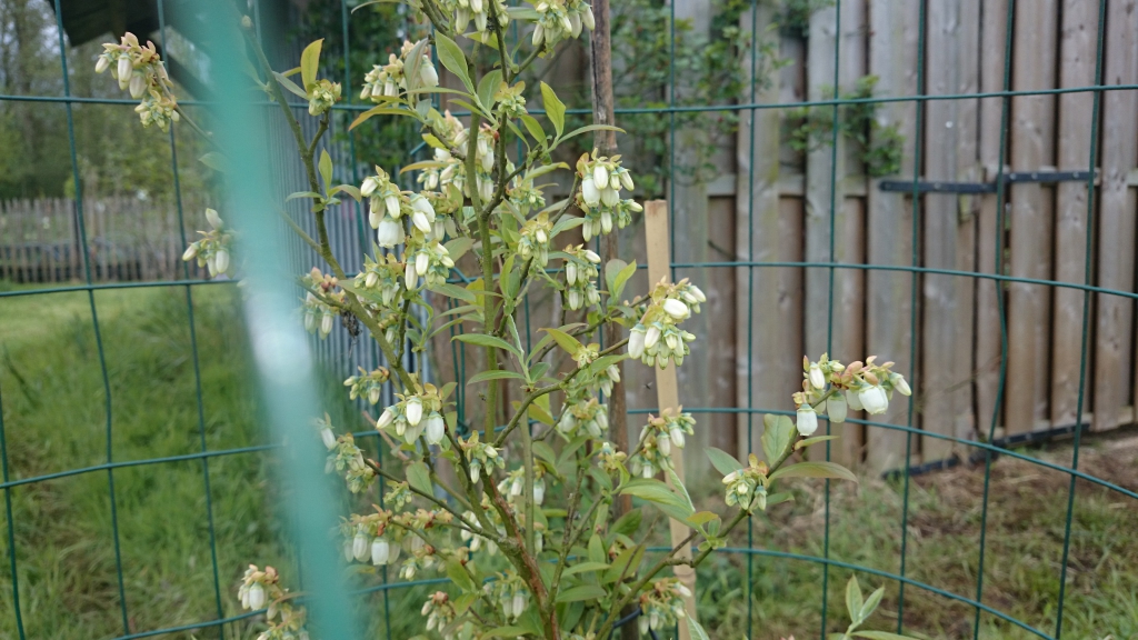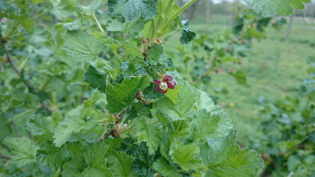 De kruisbessen zijn uitgebloeid terwijl de rode bessen en de jostabessen nog volop in bloei staan. De blauwe bessen staan dit jaar voor het eerst in bloei.