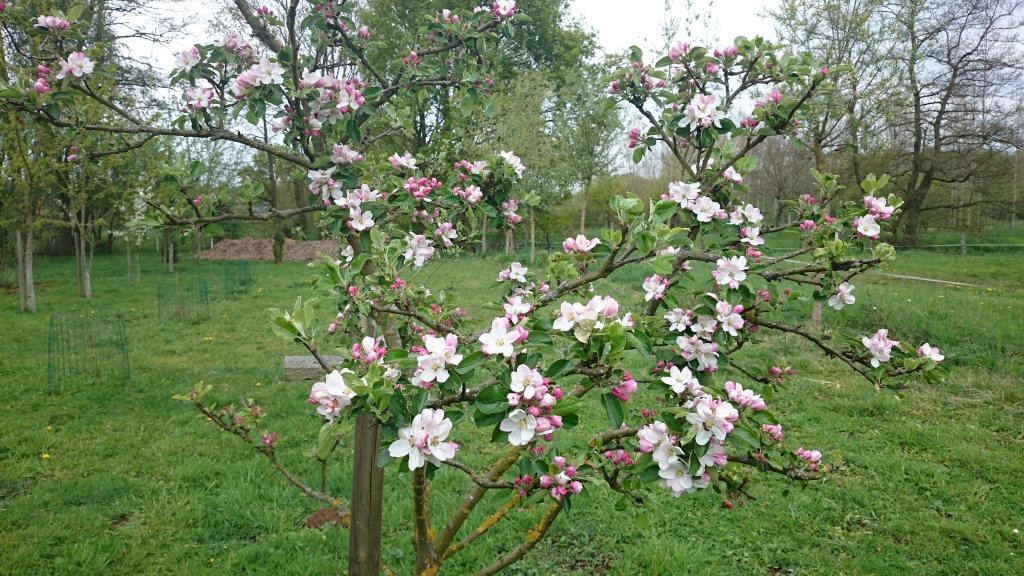 Er staan nog wat kersen in bloei en ook de appels beginnen nu.