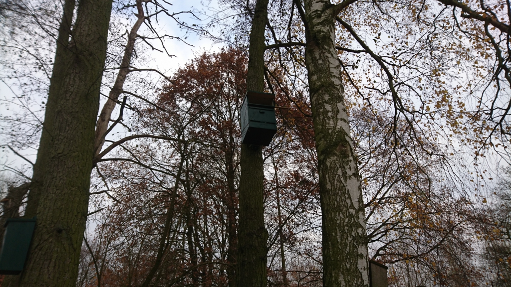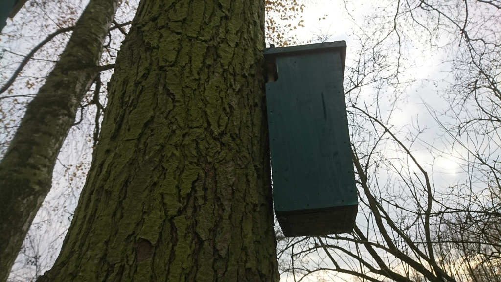 Een grote kast voor de bosuil en een ander model voor de torenvalk werden ook opgehangen. Benieuwd of ze bevolkt raken tijdens de volgende jaren.