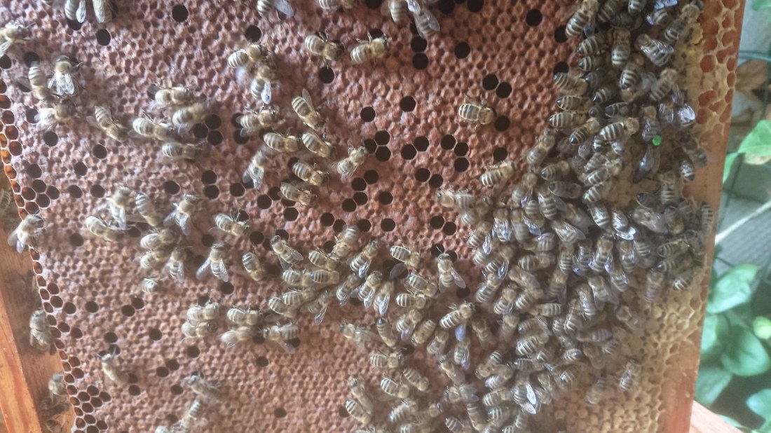 Ik begin daarom nu al met voeren. Niet massaal maar slechts tweemaal per week een voeebakje van twee liter. Het broednest zakt dan wat lager en ze voorzien dan een mooie voederkrans boven het broed. Zodra de temperaturen een week rond de twintig graden draaien, kan ik behandelen tegen de varroamijt en ligt het broed ook iets of wat beveiligd onder een laag eten. Rond half september voer ik de volken dan op gewicht.