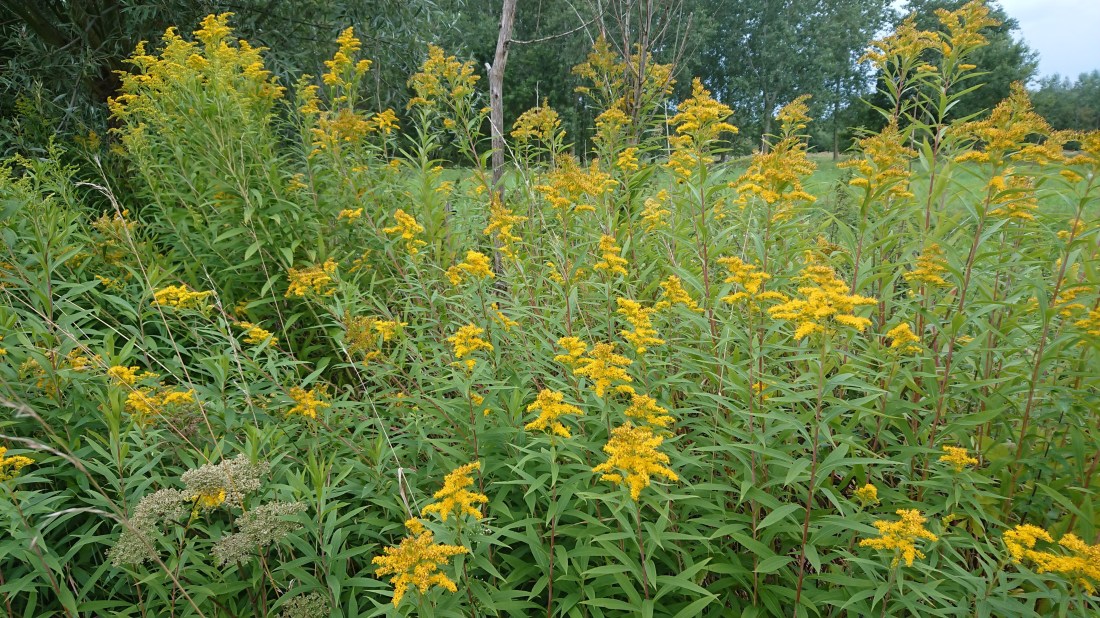 De bijenvolken zijn tot nu toe twee maal per week gevoerd met 2 liter siroop. Vandaag voor de laatste keer. Achttien Kempische volken zijn klaar voor de winter. De behandeling tegen de varroamijt met Apivar is lopende en de kasten hebben nog zeer veel broed. Ondertussen vliegen de bijen weer met stuifmeel. De reuzenbalsemien, de guldenroede, de persicaria, de doorbloeiende wilg zijn maar een deel van de najaarsbloei die nog moet komen. Ik zet de volken dan in de tweede helft van september op gewicht.