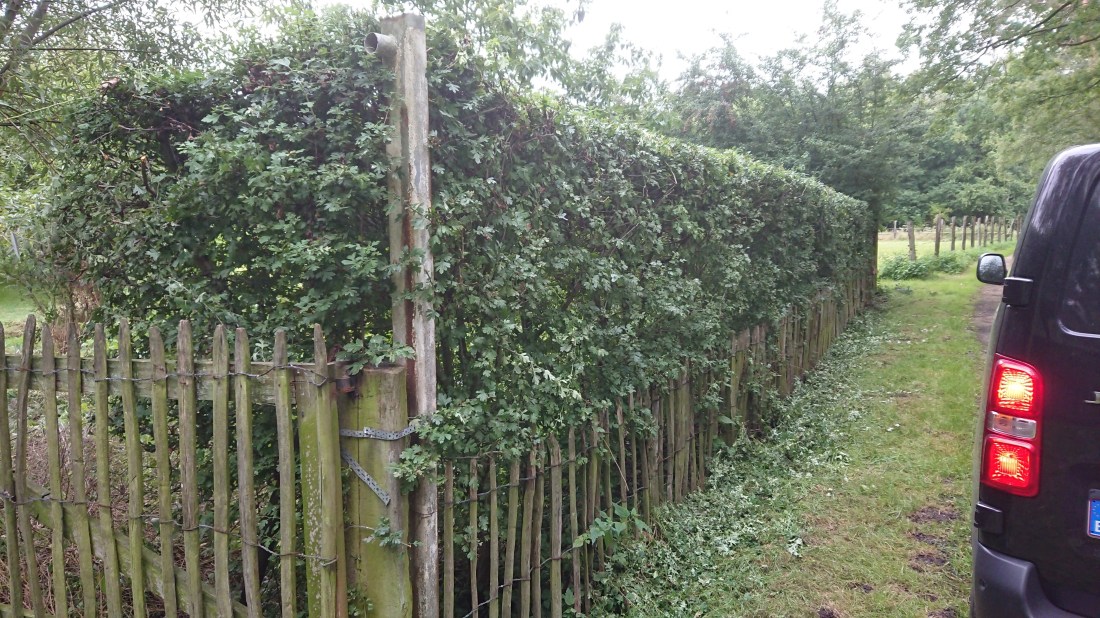 Vanmorgen de meidoornhaag nogmaals geschoren voor de winter. Ik heb ze geschoren na de bloei, maar de nieuwe scheuten heb ik nu weer verwijderd omdat de haag anders te breed en te hoog wordt.