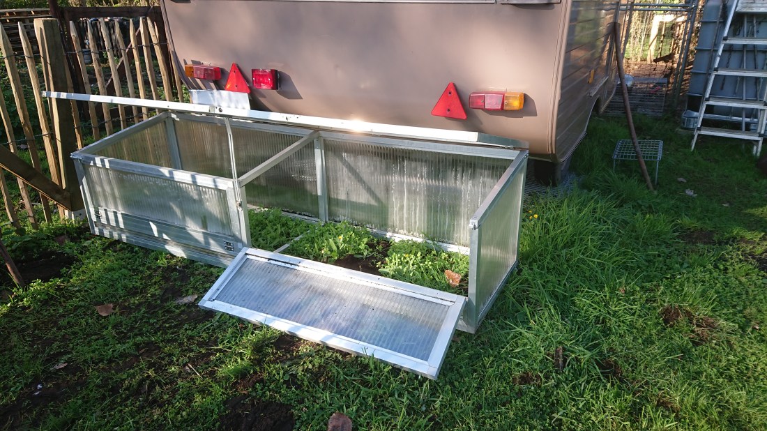 Om in januari al een start te maken met de moestuin, heb ik alvast een koude bak geplaatst. Ik graaf hierin een spade aarde weg en vul het gat dan terug met vers paardenmest en dek het af met goede tuingrond. De warmte van het verterende mest zal de bodem voldoende verwarmen.