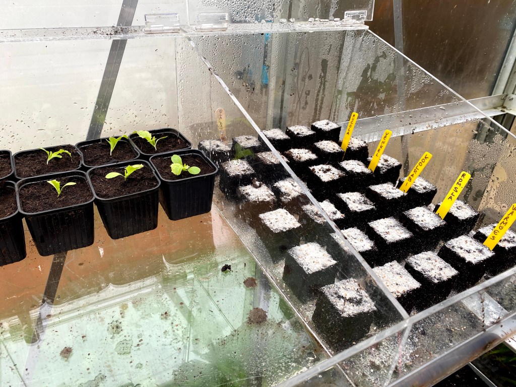 Vandaag weer wat voorgezaaid in de serre. Peultjes, tuinbonen, Romeinse sla, koolrabi, knolvenkel en warmoes. In de serre zelf heb ik een eerste rijtje rucola gezaaid.