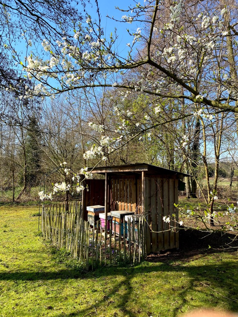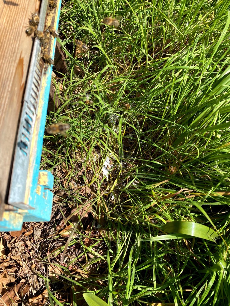 De vereniging van de bijenvolken verloopt prima. Voor elk groot volk liggen de papiersnijders buiten de kast. Volgende week controle en een honingzolder opzetten.
