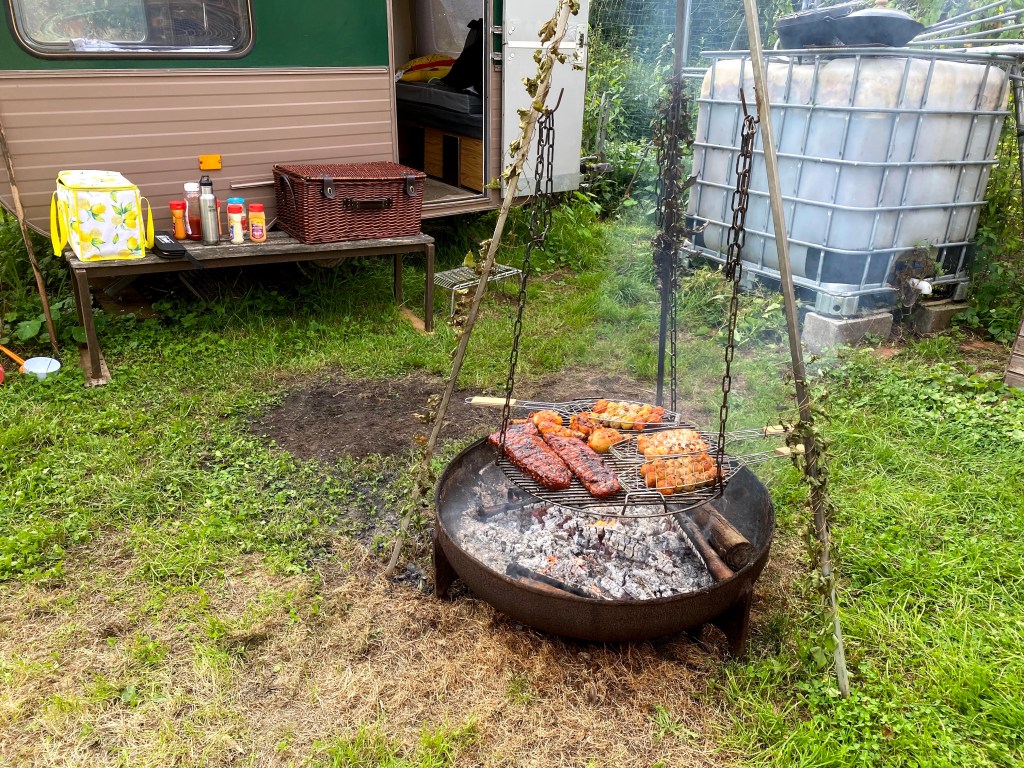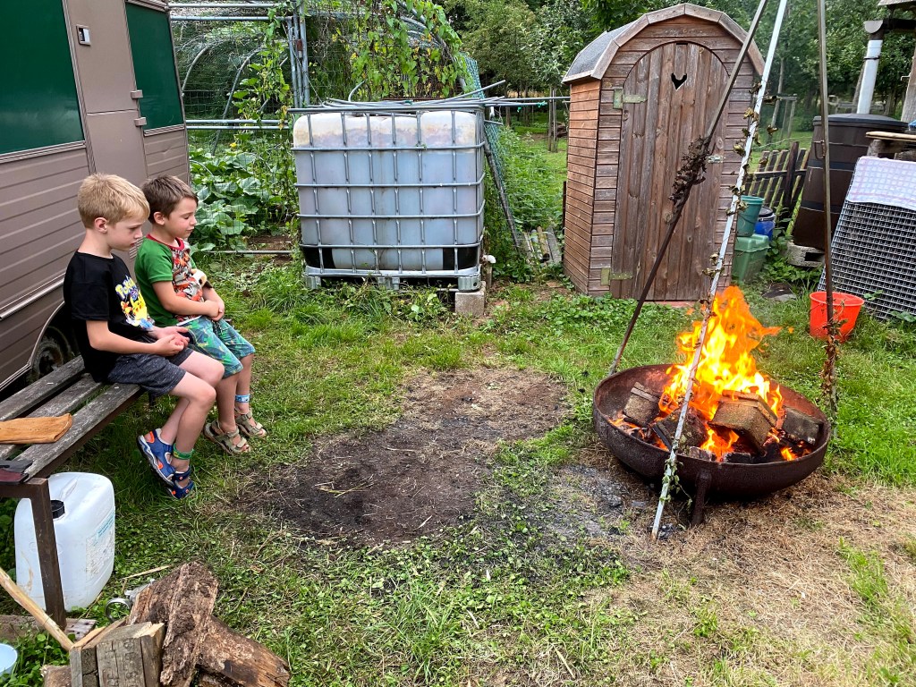 Ik had de kids een weekendje beloofd in de caravan en nu was het zover. Op zaterdag heb ik de aardappelen gerooid terwijl de kinderen konden ravotten. Tegen de avond hielden we een kleine barbecue en als het begon donker te worden, snoepten we nog wat marshmallows.