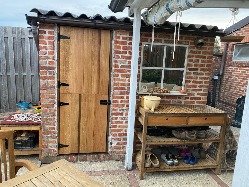 Gevelbepleistering een nieuwe verflaag gegevenNieuwe deur gemaakt aan de brievenbusNieuw deurtje naar zolderNog wat eiken planken over en ook een nieuwe dubbele deur gemaakt voor het werkhuisje Ook nog wat fietstochtjes gedaan.