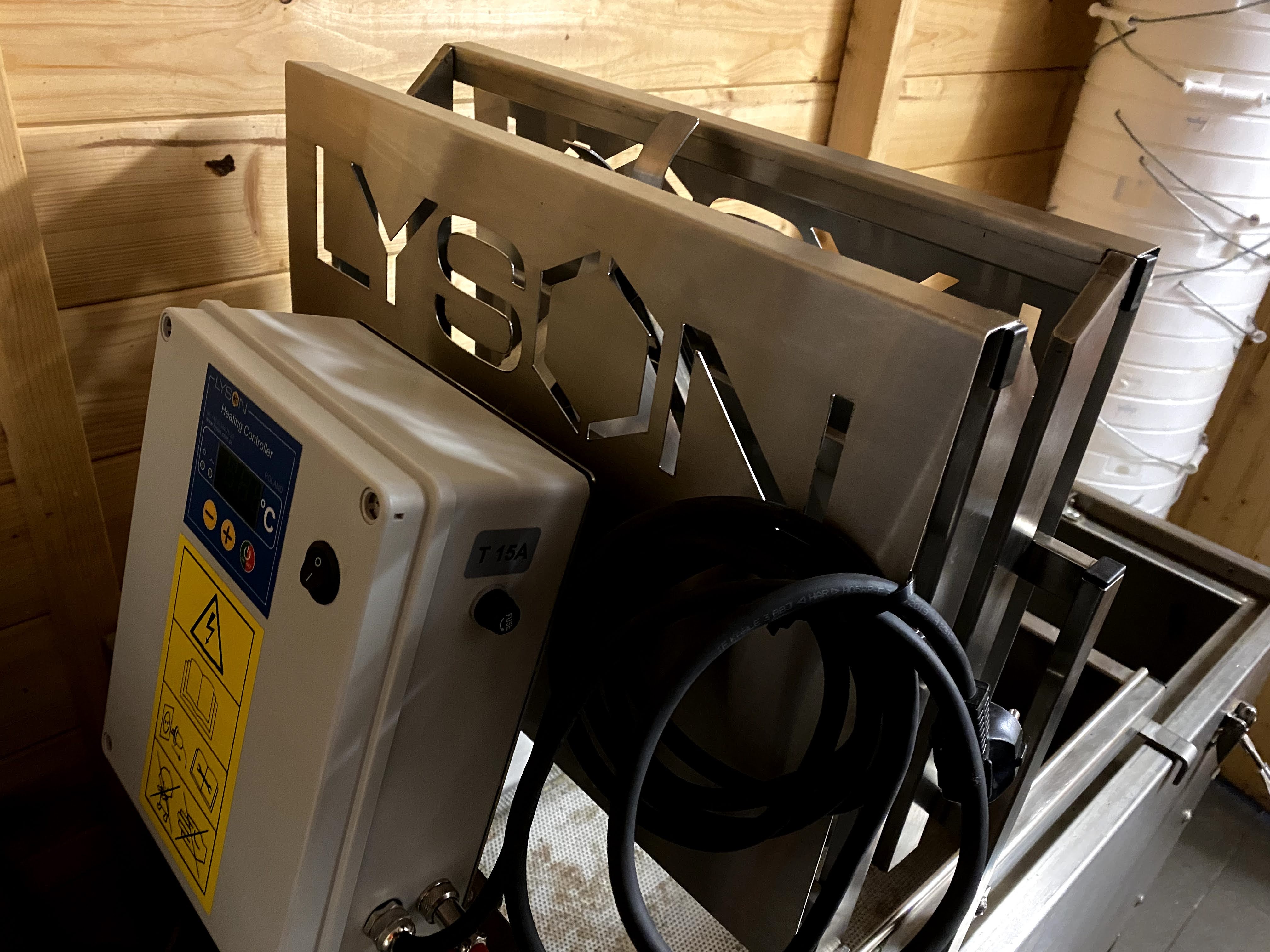 De ontzegelmessen worden verhit door eenzelfde heat-controller van Lyson als op mijn Lyson roermachine.