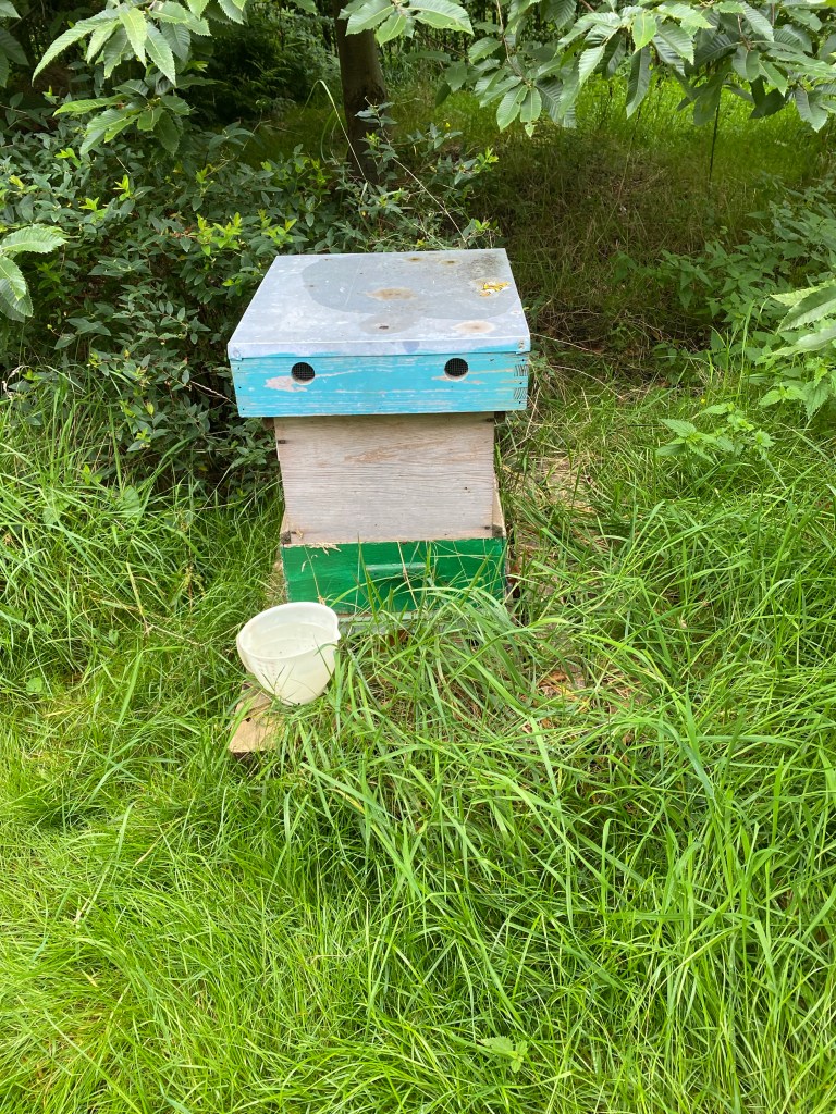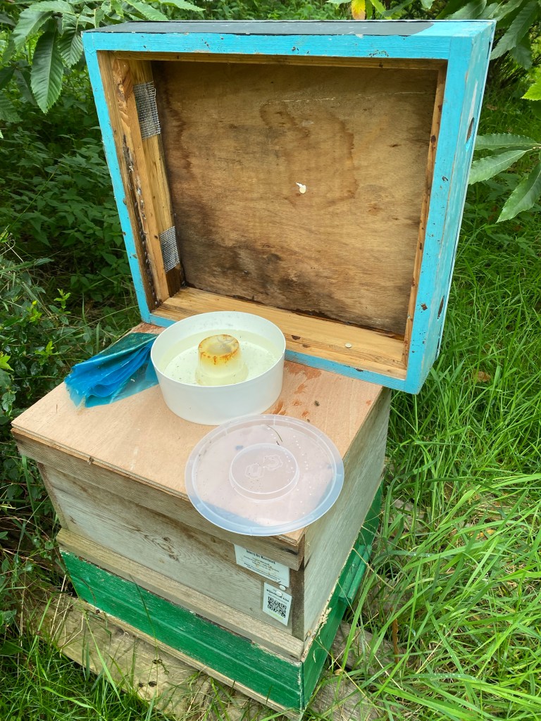 Momenteel ben ik nog steeds bezig om de bijenvolken elke week een liter suikersiroop te geven. Simpel om ze aan de gang te houden. Pas rond half september geef ik dagelijks een vol voerbakje van twee liter tot ze op gewicht zijn.