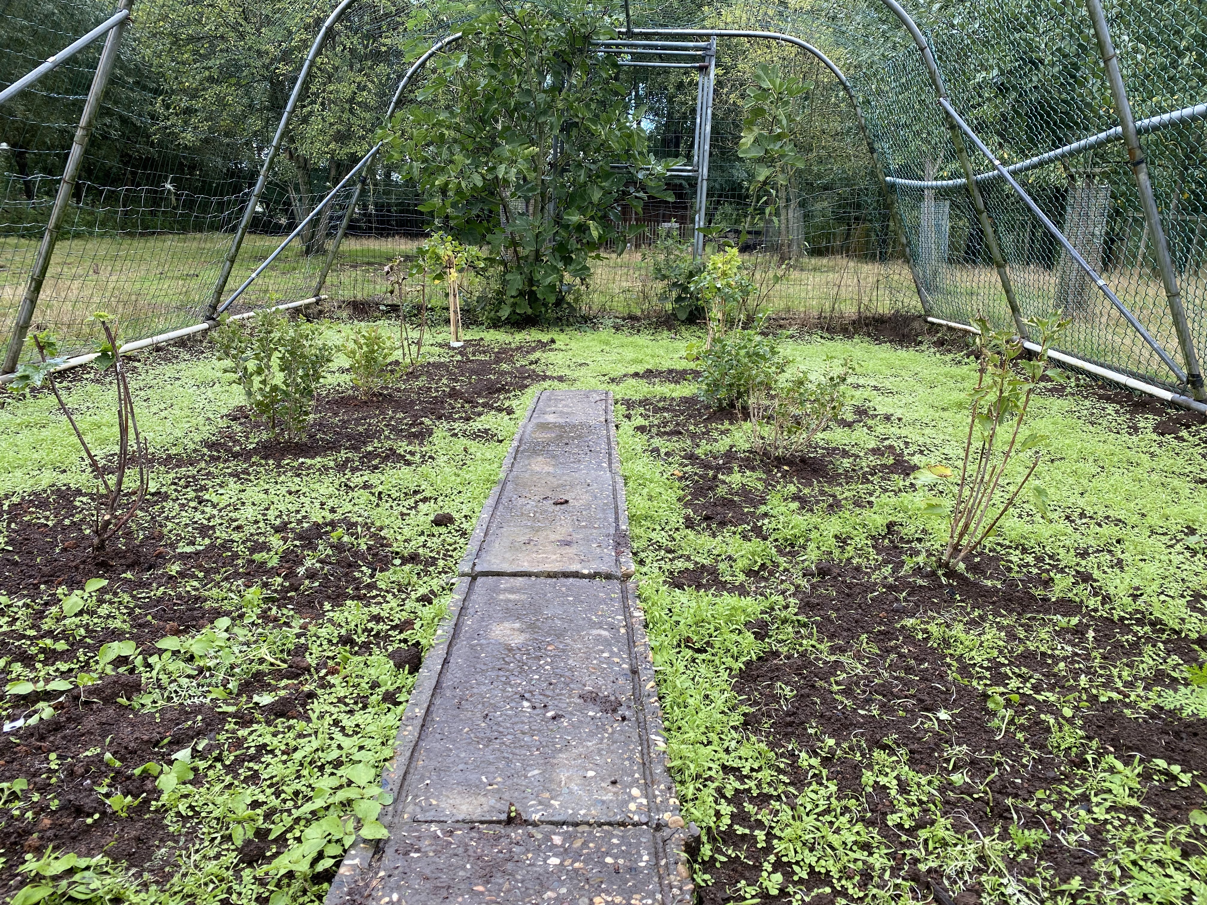 In de draadserre waar ik dit jaar aardappelen had geteeld, heb ik momenteel bessenstruiken aangeplant. Jostabessen, aalbessen, rode bessen en kruisbessen. Op deze manier hoop ik iets meer kleinfruit te kunnen oogsten. Er hoeft dan niet te worden gedeeld met de gevleugelde vrienden. Naast de bessenstruiken blijft er voldoende ruimte over voor enkele rijen winterkolen en/of aardappelen. De ganse bodem is enkele weken geleden nog ingezaaid met phacelia. Deze zal niet meer bloeien maar bevriest in de winter en kan dan met zijn organisch materiaal de grond bemesten. In tegenstelling tot mosterd geeft het geen risico op knolvoet en kan het dus op een toekomstig kolenbed worden gebruikt.