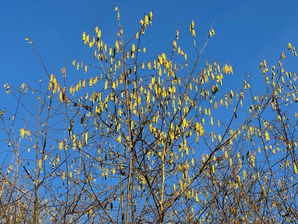 Het was vandaag weer een dag met temperaturen boven 10°C en de bijen vlogen mooi uit. En de hazelaars laten nu bij dit droog, zonnig weer ook hun eerste stuifmeel los.