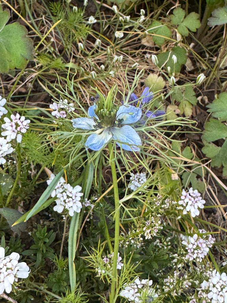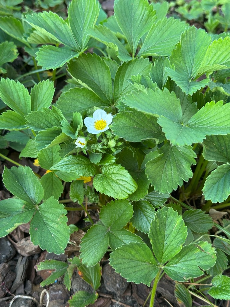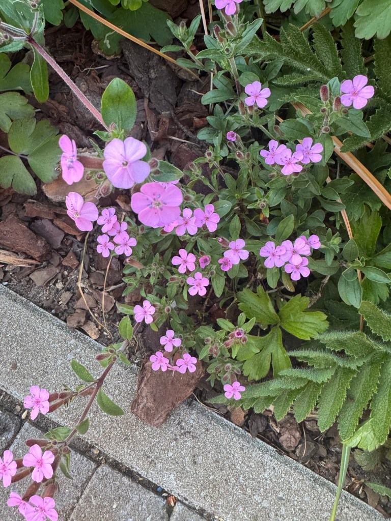 Muurzeepkruid (Saponaria ocymoides)Sierui (Allium sp.)Akelei (Aquilegia vulgaris L.)Iris (soort niet bekend)Aardbei (Fragaria X)Juffertje in het groen (Nigella damascena L.)Brandkruid (Phlomoides tuberosa L.)Roos (deze soort ruikt zeer sterk en heeft geen doornen)