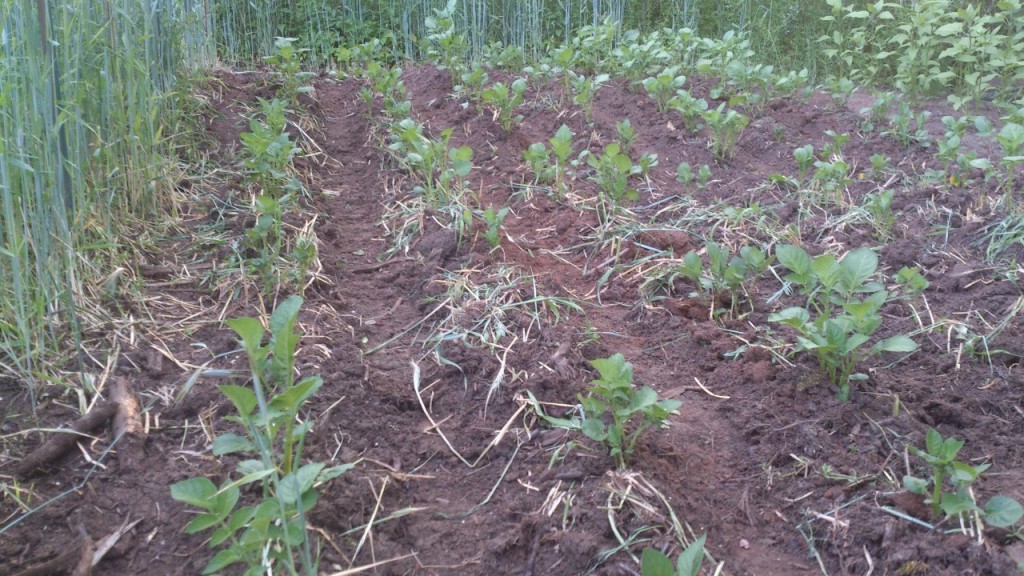 Naast de aardappelen heb ik ook voor het eerst een veld aardperen gezet. Vroeger zette ik deze altijd als haag, maar dit jaar wil ik er echt van oogsten en heb ze daarom op een bed geplaatst. De hoge stengels vallen dan vermoedelijk niet zo snel om en op een bedje kan ik de ondergrond beter onderhouden om de knollen vlotter te oogsten.