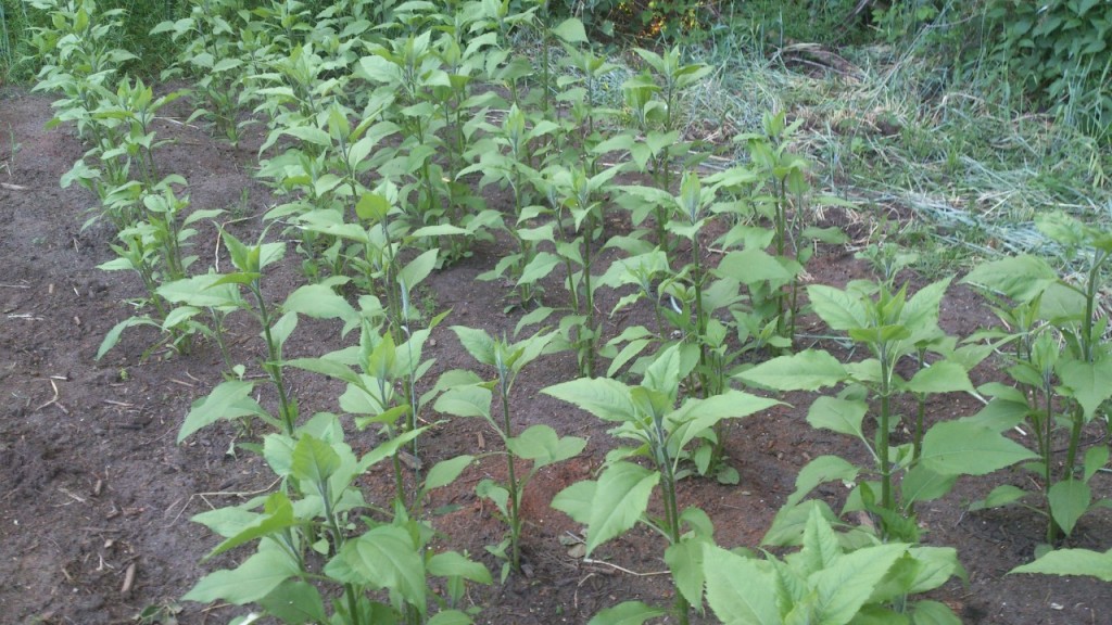 De eerste mosterd staat in bloei en de phacelia begint vermoedelijk ook deze week weer. Gisteren heb ik ook wat peulen afgenomen van de bladramenas en enkele bloemhoofden van de zonnebloemen.