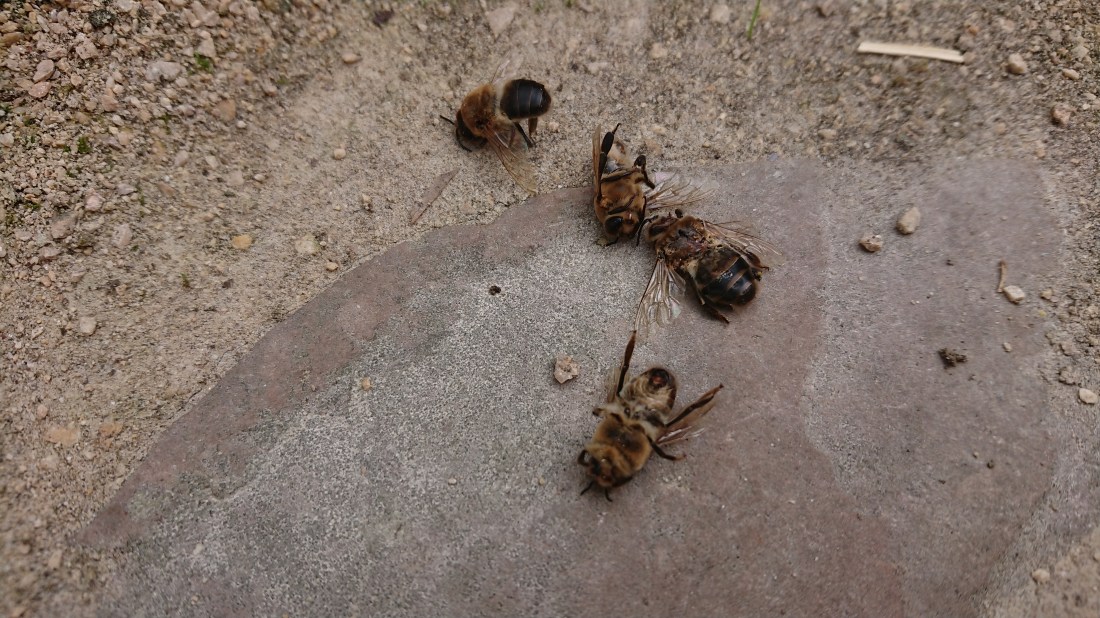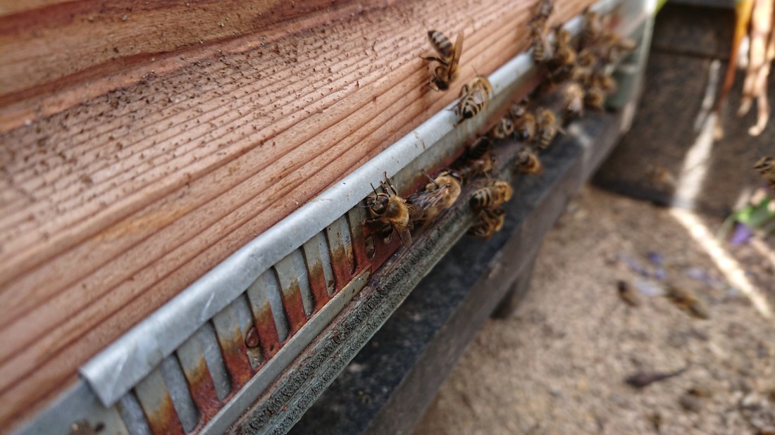 De bijenvolken zijn tot nu toe twee maal per week gevoerd met 2 liter siroop. Vandaag voor de laatste keer. Achttien Kempische volken zijn klaar voor de winter. De behandeling tegen de varroamijt met Apivar is lopende en de kasten hebben nog zeer veel broed. Ondertussen vliegen de bijen weer met stuifmeel. De reuzenbalsemien, de guldenroede, de persicaria, de doorbloeiende wilg zijn maar een deel van de najaarsbloei die nog moet komen. Ik zet de volken dan in de tweede helft van september op gewicht.