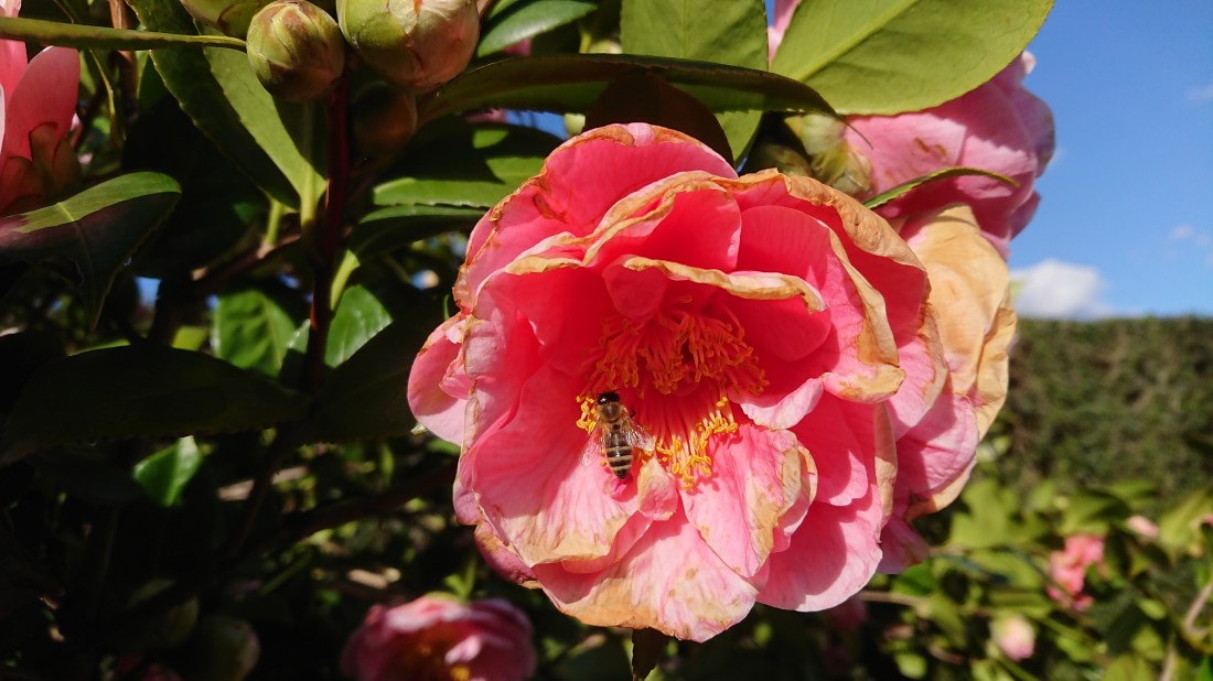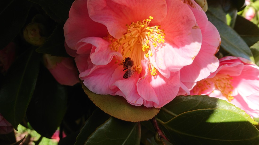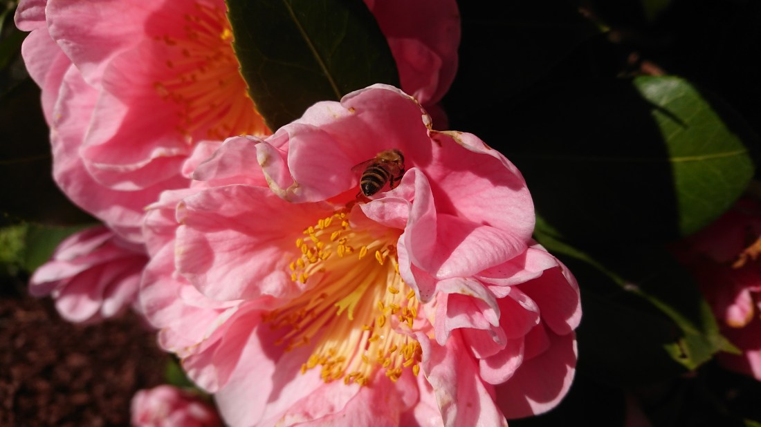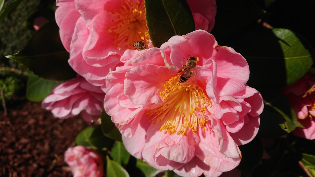 Bijen op Camelia japonica