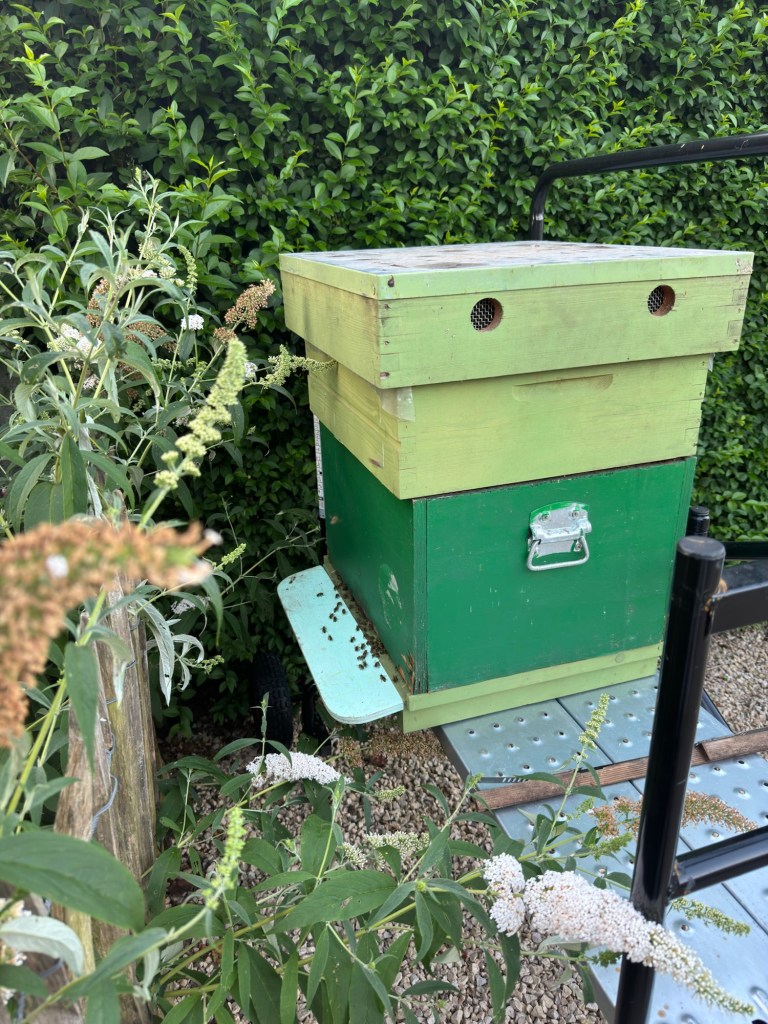 Het apideakastje heb ik nu verwijderd. Het is ondertussen vervangen door een honingruimte. Een ruimte waar de bijen hun opgehaalde nectar zelf mogen oppotten.