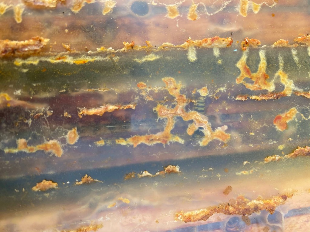 Vandaag was de temperatuur 10 graden en de bijen zaten zeker niet in een vaste tros. Ook de volgende week is er geen lagere temperatuur te verwachten en daarom heb ik de behandeling via sublimatie doorgevoerd. Druppelen werkt niet goed als de tros niet dicht genoeg is. De bijen geven dan het oxaalzuur slecht door naar elkaar en veel valt zelfs door de tros op de bodem. 5 ml per straat is ook totaal anders als de bijen los zitten op 9 straten of dicht op elkaar in 5 straten. Daarom is er bij deze temperaturen geen degelijk resultaat te verwachten van een druppelbehandeling.