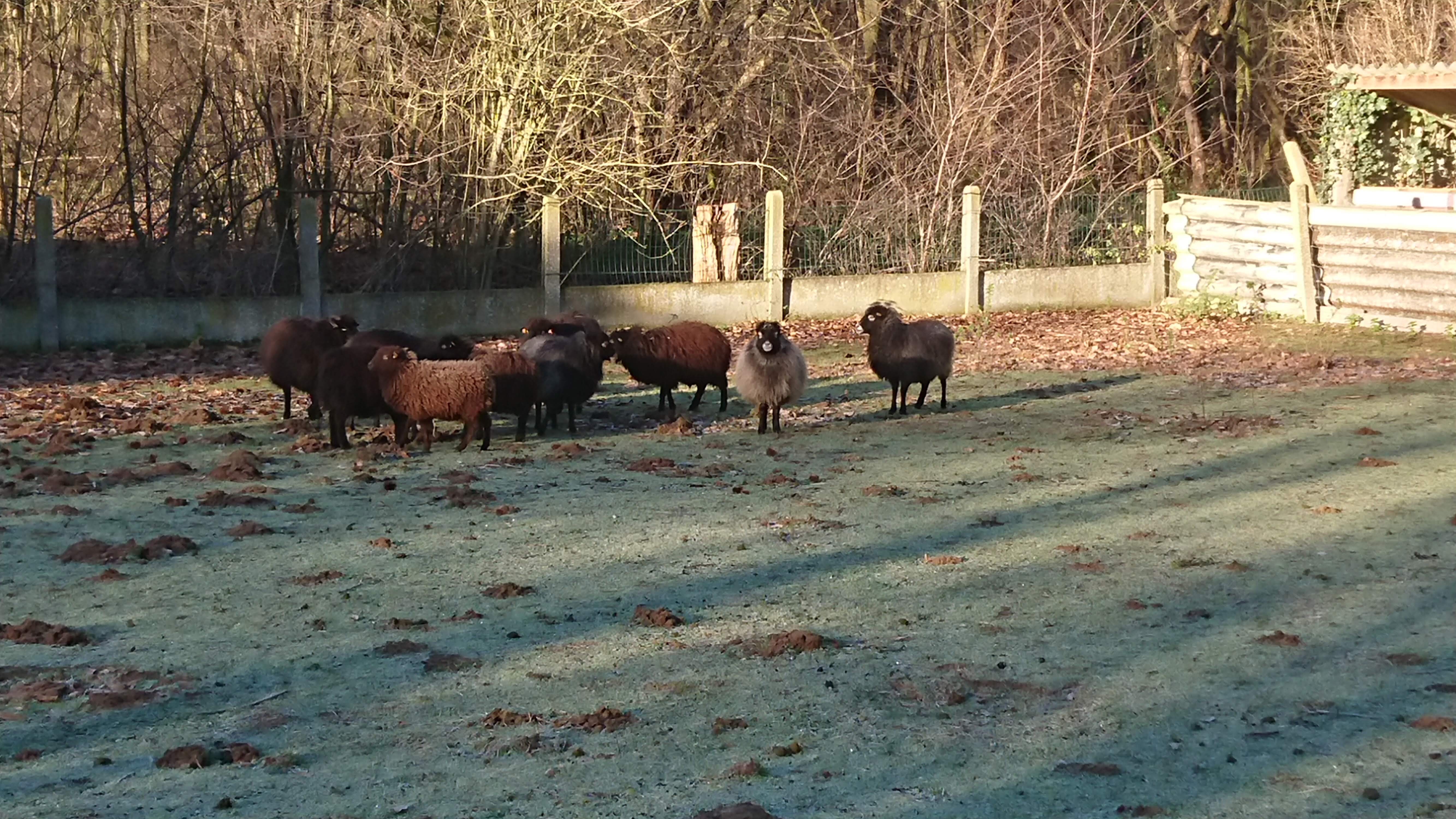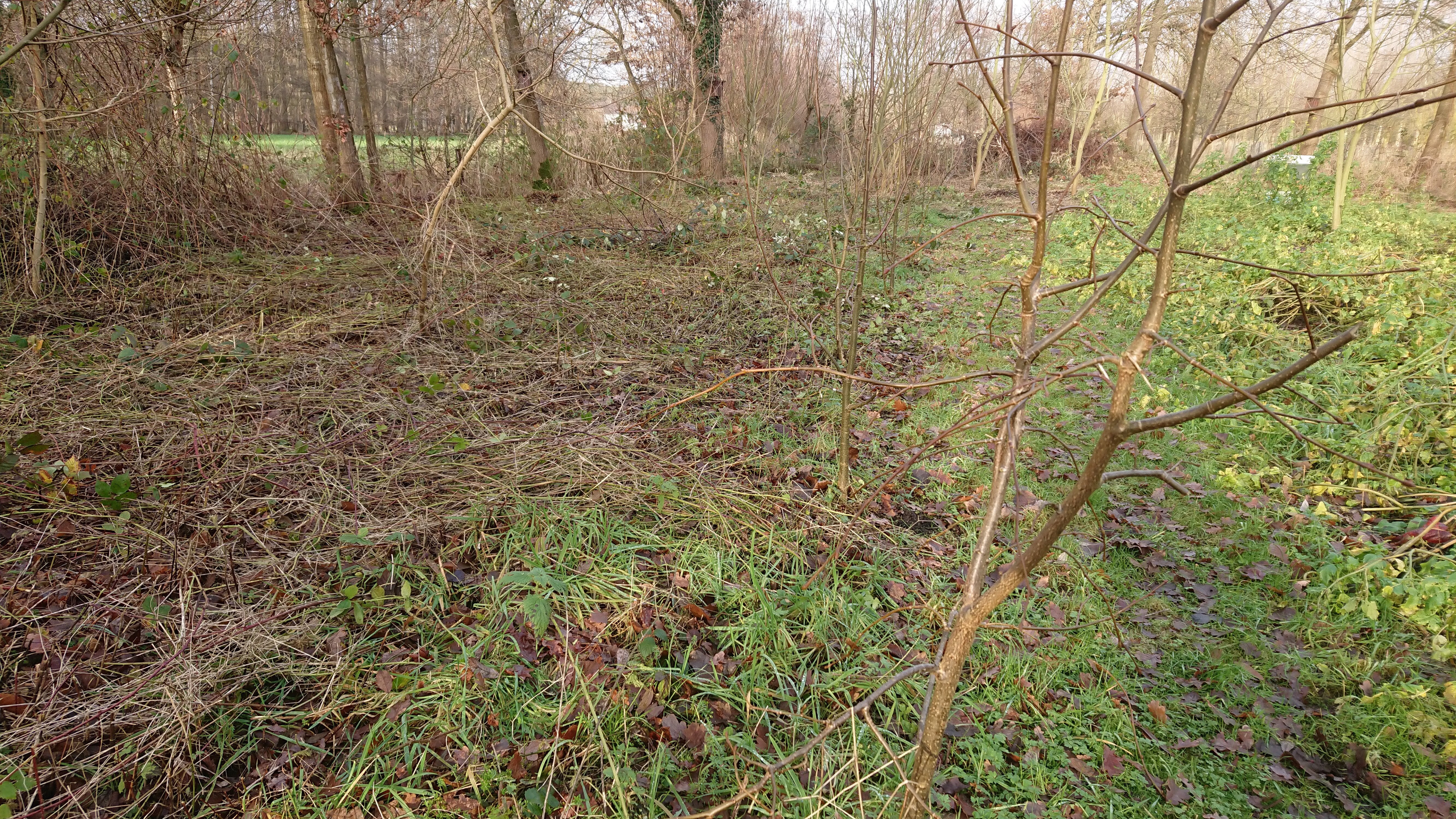 Het perceel van 60 aren is momenteel langs de zijkanten volledig omzoomd met knotwilgen. Hiervan moet ik nog een aantal knotten deze winter. Aan de noordkant loopt de beek en aan de zuidkant heb ik een haag van meidoorn aangeplant. Die wordt geschoren na de bloesem in de zomer. Het voorste deel van het perceel waar de schapen niet komen, is voorzien van drie veldjes die ik inzaai voor de bijen en een stuk ruigte. Hier heb ik een haag hazelaar geplant, een rij Egyptische wilg en een rij lindebomen. De rest komt stilaan vol schietwilg te staan. Maar ondertussen maai ik wel regelmatig de netels en bramen.