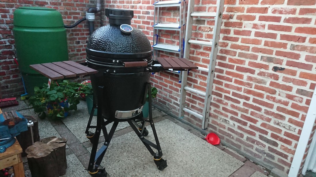 Onlangs heb ik me een kamado aangeschaft. Een keramiek barbecue zeg maar. Ik heb gekozen voor het Nederlandse merk The Bastard. Ik was al langer geïntrigeerd door die eivormige toestellen. Maar ik heb reeds een Chuck wagon die me volledige voldoening schenkt. Als barbecue en smoker is dit het summum. Maar een broodoven of een pizzaoven om zelf te bouwen, vond ik ook wel leuk. Vermits de kamado dit eveneens kan, heb ik me er toch een aangeschaft. Gisteren heb ik om hem in te wijden schaap bereid op drie wijzen: een ontbeende bout, mergez-worstjes en kebabs. Het resultaat was prima. Vandaag heb ik om vier uur The Bastard dan weer in gang gezet voor het grillen van spek en ribbetjes . Maar om negen uur heb ik dan nog besloten om met dezelfde portie houtskool in een al deels afgekoelde kamado mijn brood voor morgen te bakken. En dat ging prima. Ik geloof dat ik er nog veel plezier mee ga beleven.