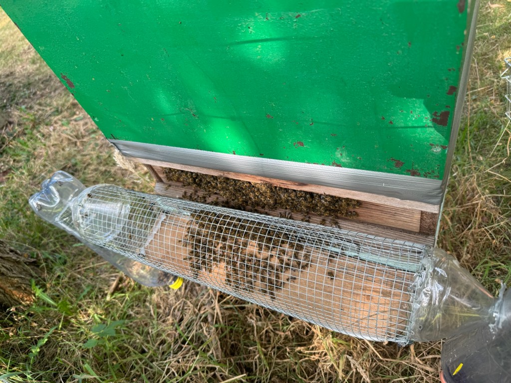 Maar de wespenvallen en de muilkorven zijn duidelijk nog niet genoeg. Daarom heb ik ook nog elektrische hoornaarharpen besteld en hoornaartenten. De levering van deze beschermingsmiddelen is echter vertraagd door de enorme vraag van de imkers. Zodra ik ze ontvang en in gebruik heb genomen, zal ik hierover berichten.