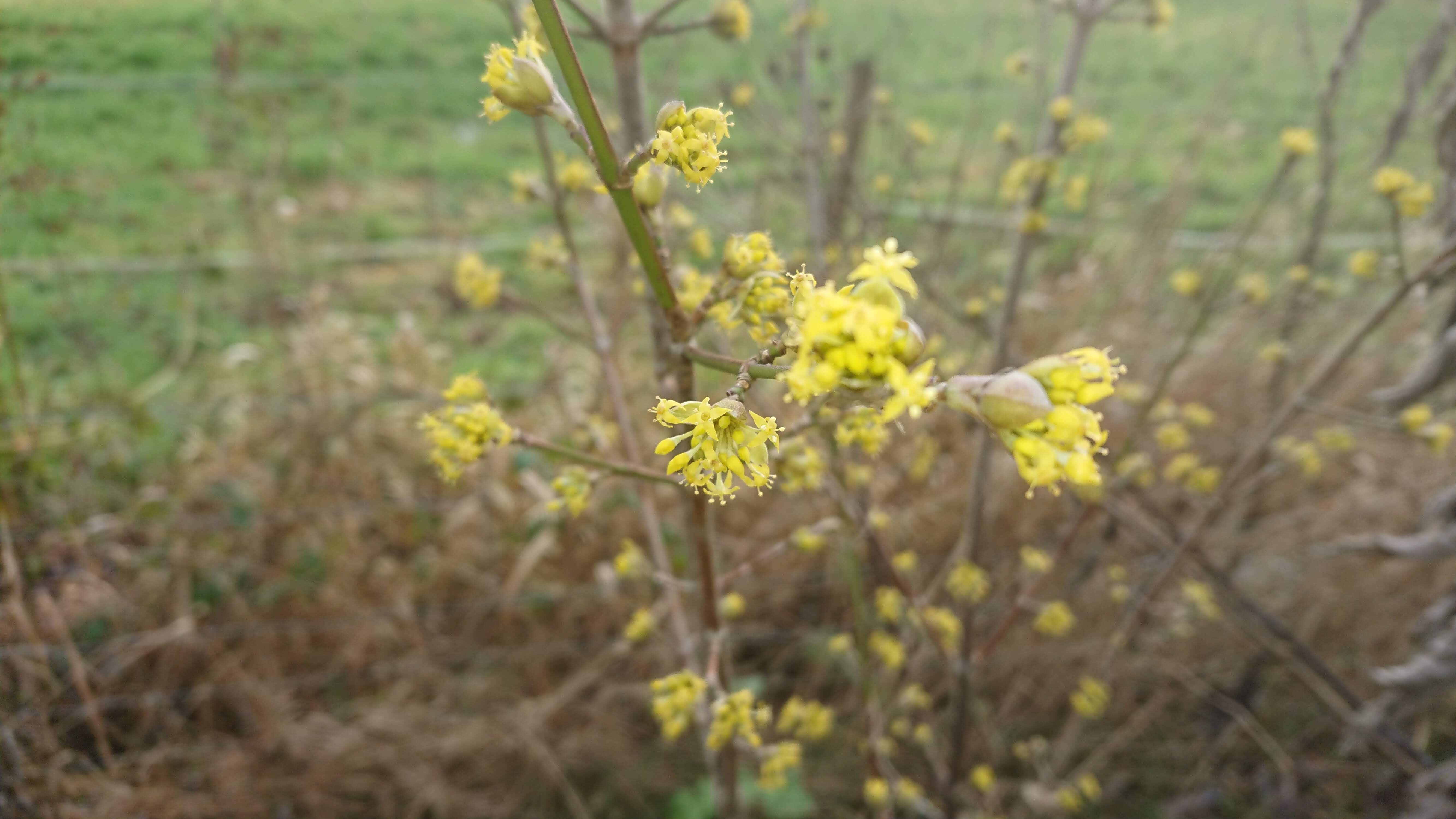 De gele kornoelje is momenteel ook in volle bloei. Het betreft hier wel een kleine struik van slechts drie jaar.