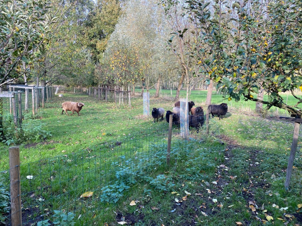 De bok is los! Gisteren heb ik hem weer verhuisd naar de kudde. Hij mag nu tot nieuwjaarsdag bij zijn dames het jaar afsluiten. De overige tien maanden van het jaar brengt hij noodgedwongen door bij de kudde castraten. Om ongewenste dekkingen te voorkomen, castreer ik namelijk alle bokjes. Dit jaar heb ik echter ook drie jonge ooitjes overgehouden. Ze kunnen volgend jaar enkele oudere ooien vervangen. Volgend jaar pas, want nu heb ik ze verhuisd naar de castraten. Ze krijgen de bok dus pas volgend jaar te zien. Deze flinke jongen heeft nu de tijd van zijn leven. De eerstvolgende dagen is hij nu alleen maar bezig met orde te scheppen in zijn harem. Voortdurend drijft hij ze allemaal samen en accepteert niet dat ze afdwalen. De vele kilometers die hij op deze manier aflegt, zullen zijn zomervet wel doen wegsmelten. Door hem pas nu bij de kudde te brengen en slechts gedurende twee maanden, concentreer ik de geboortes tijdens de maanden april en mei. Het voorjaar is dan ook begonnen met zijn warmere temperaturen en vers mals gras.