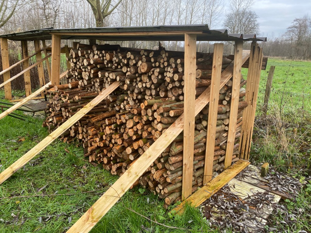 Bij de bijen is het nu even rustig maar de planten vragen wel wat aandacht. Voor de fruitbomensnoei is het nog wat te vroeg maar voor de knotwilgen is het ideale moment aangebroken. Ik heb 15 jaar geleden de bijenstand bijna volledig omgeven met knotwilgen. Ongeveer 250 stuks. Jaarlijks knot ik daar een deel van. Ongeveer een vierde, waardoor de bijen steeds voldoende bloesem overhouden en ik ook voldoende brandhout verkrijg. De gesnoeide takken tot ongeveer 5 cm dikte worden verhakseld en de dikkere worden verzaagd tot brandhout.