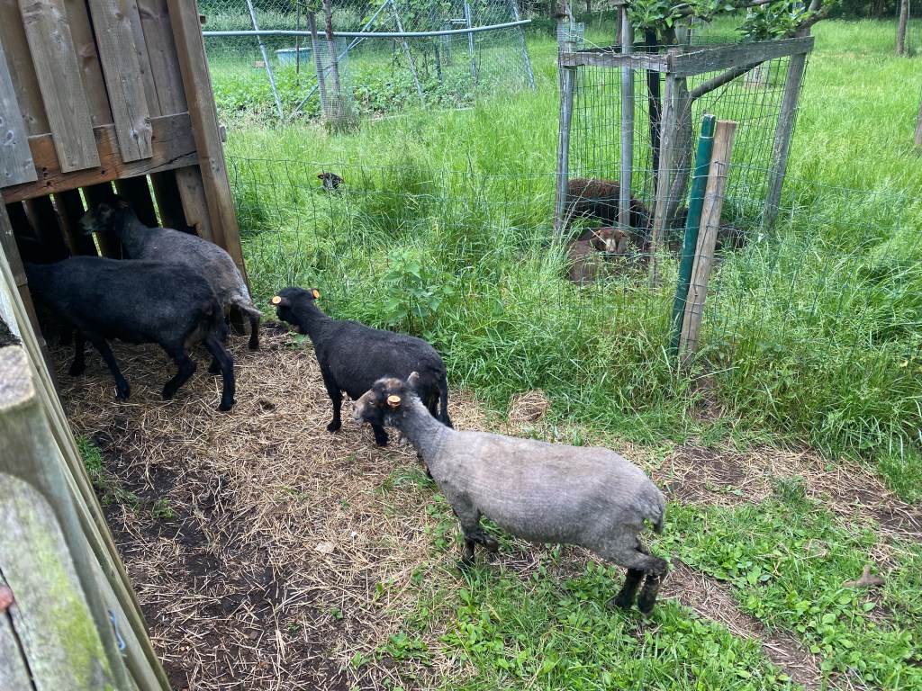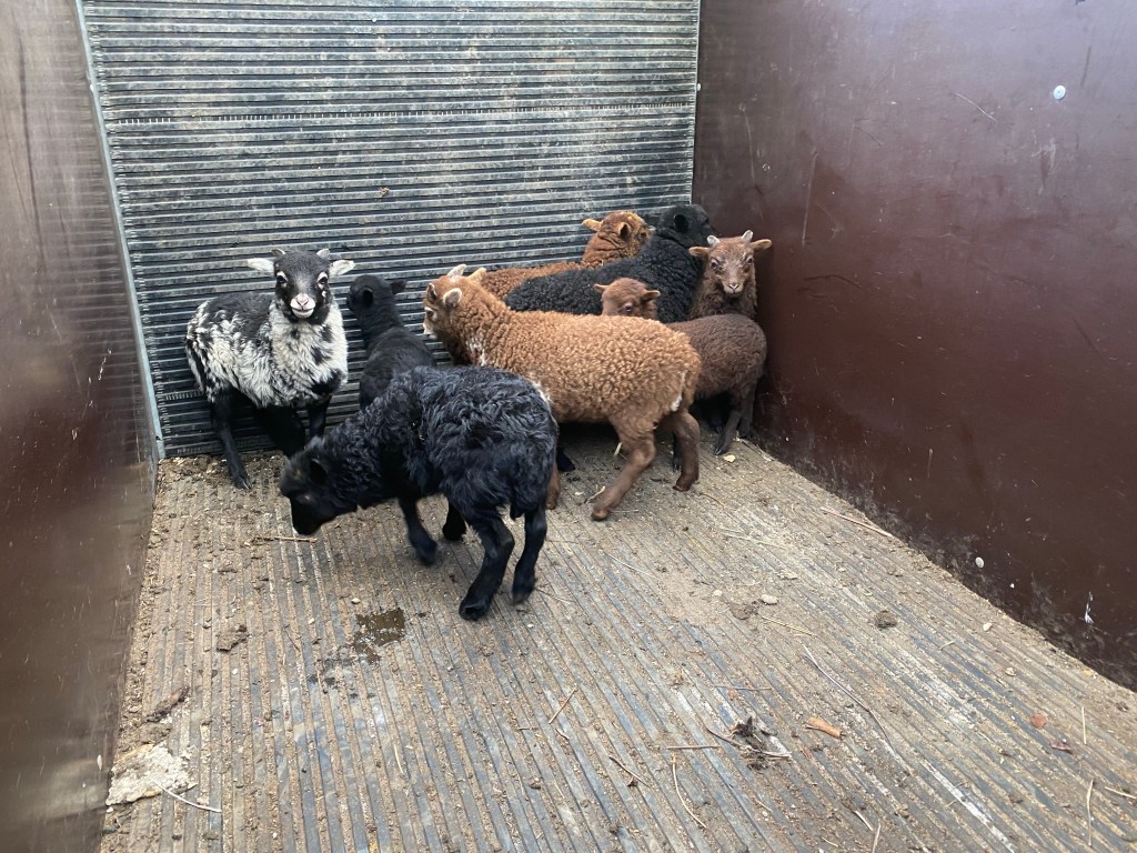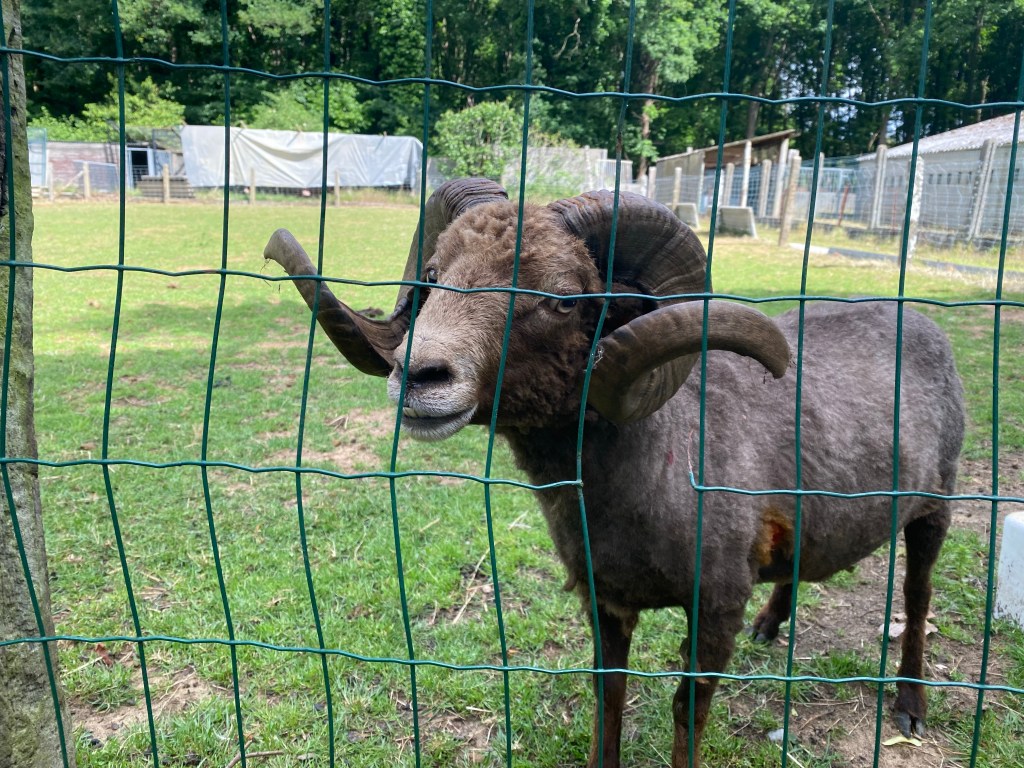 Gisteren werden de schapen geschoren. De dieren werden tegelijk behandeld tegen parasieten en gevaccineerd tegen blauwtong. Ook de hoefjes werden gepedicuurd. Vandaag heb ik ze dan allemaal vervoerd naar hun zomerweide. Ik heb ze weer verruild tegen de bok. Deze laat ik alleen maar bij de ooien in november en december. Maar de bok is natuurlijk niet alleen. Hij heeft een castraat als gezelschap, een halfbroer van hem.