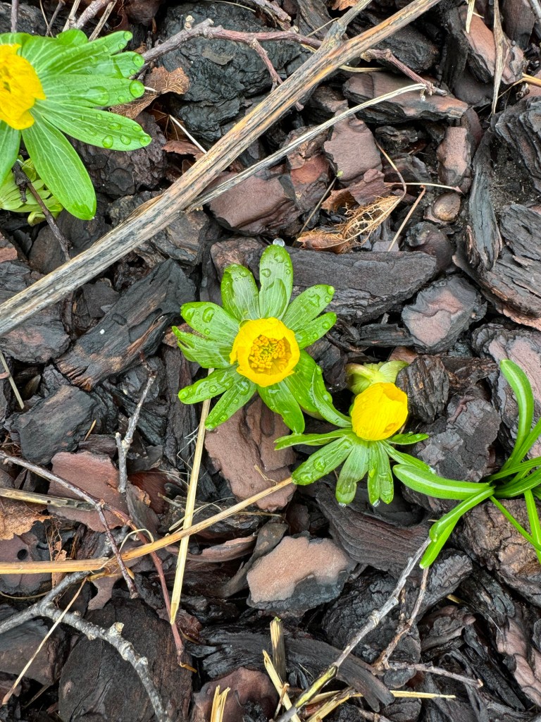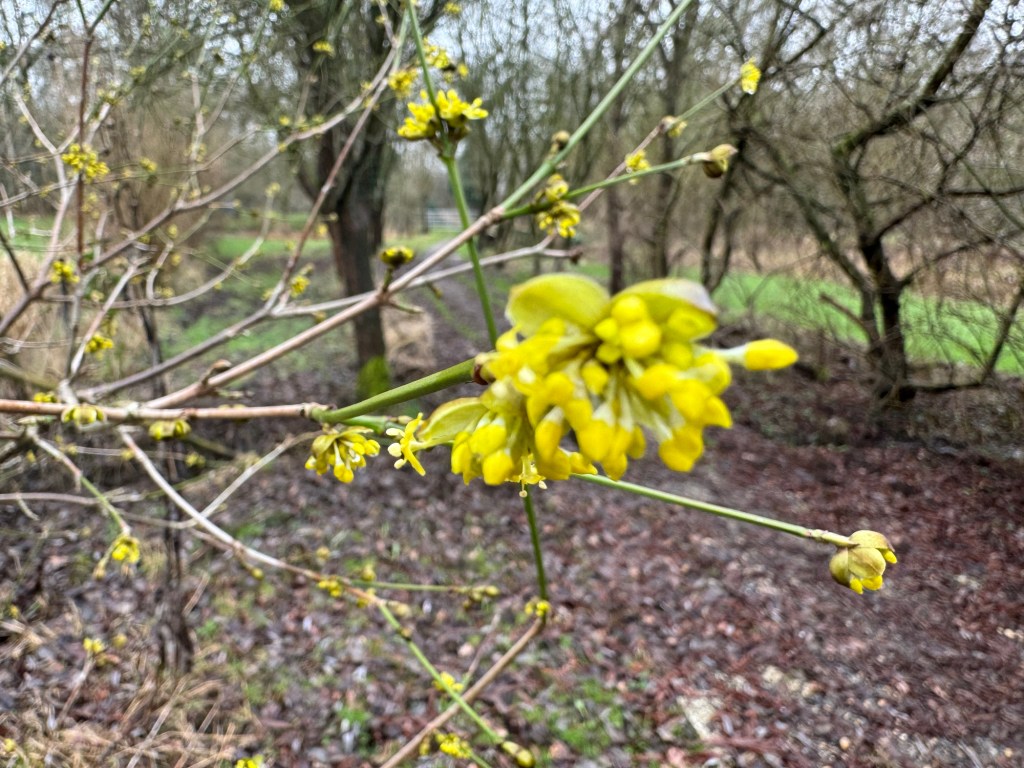 De natuur wordt ook stilaan wakker. De gele kornoelje gaat er aan beginnen en de winterakonietjes en sneeuwklokjes staan al volledig in bloei.