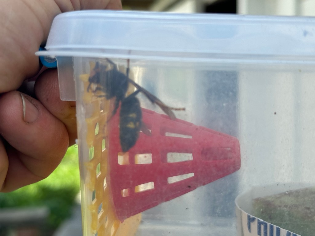 Gisteren de tweede Aziatische hoornaarkoningin in de tuin gevangen.