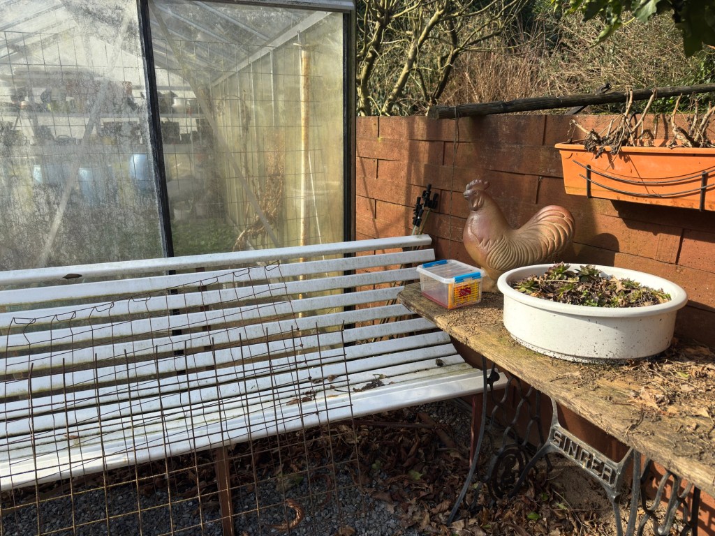 Vorige winter is er ook in de tuin een apideakastje blijven staan. In december heb ik het nog behandeld met oxaalzuur en op 9 maart heb ik het op een oud zesramertje gezet. Simpel een houten plaat met een gat en het torentje er in geplaatst.